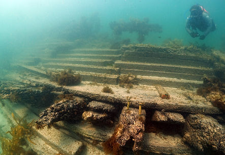 The wreck site for the Chaudiere sits just off the beach north of the Hamelin Bay Caravan Park and boat ramp and is easily accessible even as a shore dive. The site measures around 30 metres by 10 metres and has considerable amounts of the hull still exposed. Neatly stacked in the centre of the site remains the timber sleepers that were loaded as cargo and destined for the east coast and over the site also remains numerous copper nails, fittings and hull sheathing. The site is surrounded by sand and anchoring off the side of the site is very easy, it sits in 5 metres of water. This part of the bay is somewhat protected by swell however being so close to the shore break and being a site surrounded by sand, it stirs up easily. * Like all sites older than 75 years it is fully protected from interference under the historic shipwrecks act.